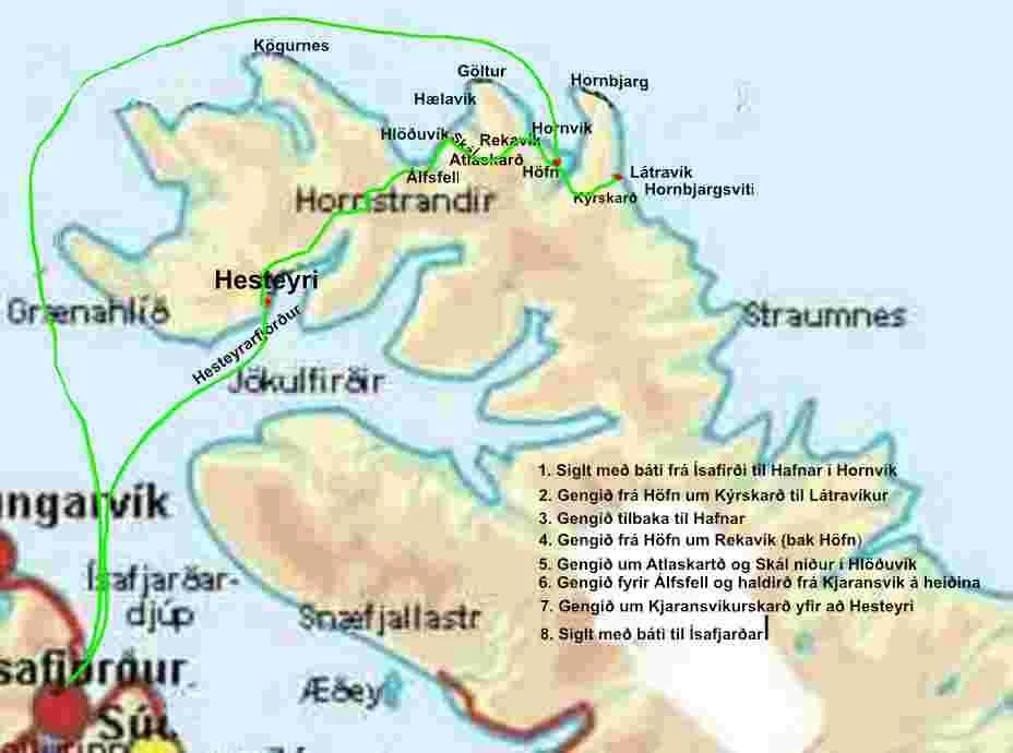 Gengið niður í Rekavík (bak Látur) og tilbaka til Látravíkur